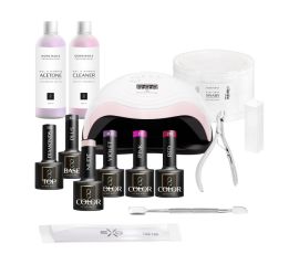SET DE START HYBRID OCHO NAILS 3: Setul conține produsele esențiale pentru stilizarea unghiilor. Include lacuri hibride, lichide și preparate, precum și accesorii. În plus, este completat cu o lampă profesională pentru întărirea unghiilor hibride și o mașină de frezat unghii. OCHO NAILS...