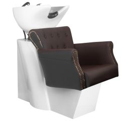 stylish barber shop.  very comfortable, it fits perfectly into the interiors of elegant living rooms.  very stable and solid. upholstery of the highest quality brown eco-leather. car wash base in white.