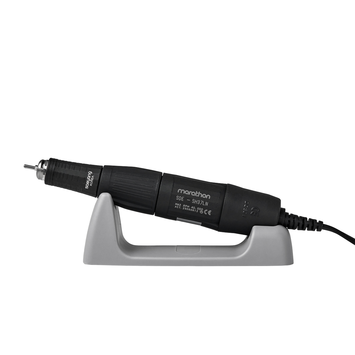 Manșeta funcțională și precisă SH37LN se potrivește perfect în mână, garantând un confort ridicat în timpul lucrului. Ajunge la o viteză maximă de până la 40.000 de rotații pe minut, făcându-l ușor de utilizat. Este echipat cu un sistem Twist-Lock ușor de utilizat, care permite schimbarea rapidă a frezei. Datorită acestui lucru, lucrul devine extrem de ușor și intuitiv, ceea ce va fi apreciat și de utilizatorii mai pretențioși. Penița este corect echilibrată și profilată ergonomic, iar vibrațiile acesteia au fost reduse, ceea ce înseamnă că chiar și orele lungi de lucru cu nail drill-ul nu obosesc excesiv mâna. Carcasa din plastic restricționează transferul de căldură astfel încât încălzirea dispozitivului nu este simțită. Cablul flexibil cu arc oferă un confort ridicat în timpul lucrului, ajungând până la 135 cm în lungime cu întindere semnificativă.