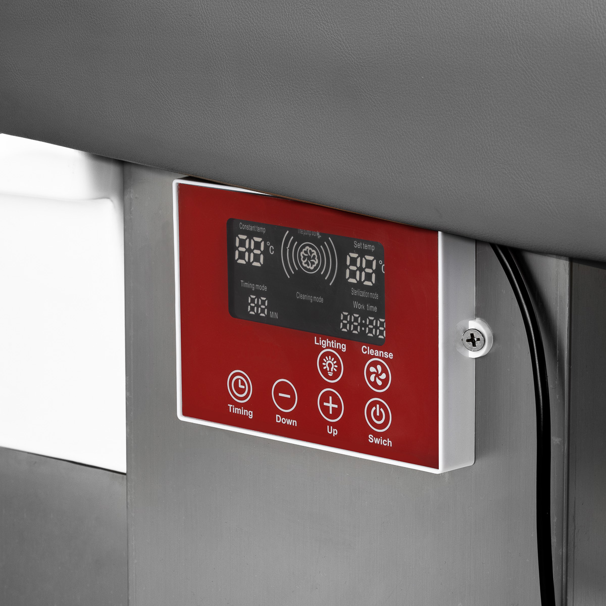 The intuitive touch panel provides full control over the wash unit functions. It allows you to adjust the operating time and water temperature, as well as monitor their current values. Thanks to the built-in display, you can check how long the device has been working at any time. The panel also allows you to activation of the light therapy function, i.e. illumination of the bowl, creating an atmosphere of relaxation and luxury. Additionally, the steam therapy device is equipped with a remote control, enabling convenient remote operation.