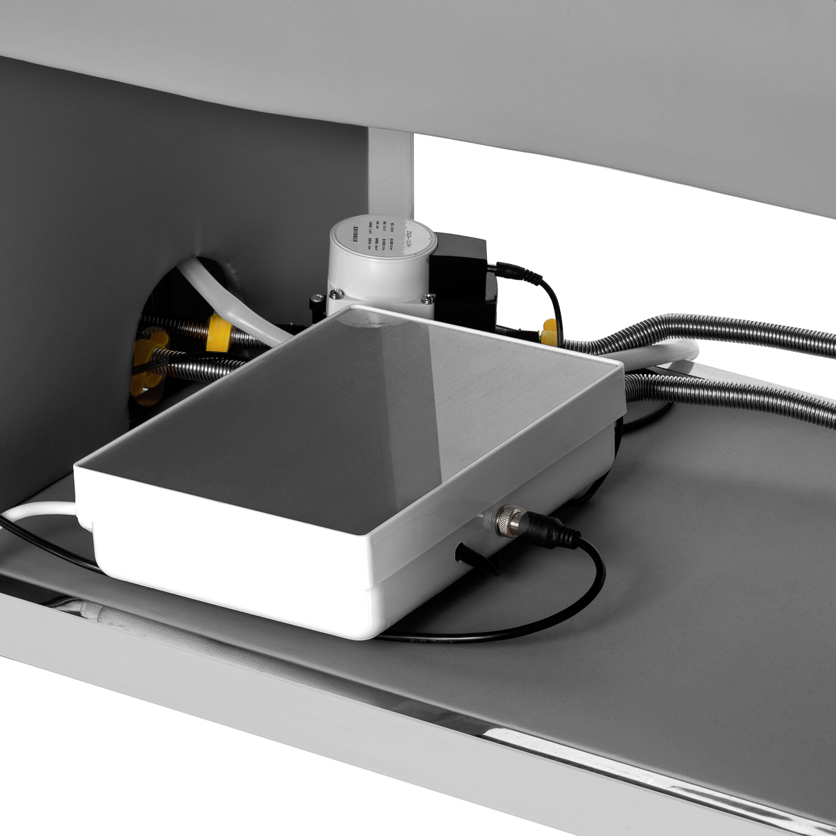 The deep ceramic bowl in shades of white effectively prevents splashing of water and products used during treatments, ensuring cleanliness and comfort of work. Its unique bend not only facilitates access for the practicioner, but also adds an elegant, modern character to the wash unit. Made of durable material, the bowl is resistant to discoloration, scratches and damage, and its smooth surface makes keeping it clean exceptionally easy. The combination of functionality and aesthetics raises the standard of any professional space.