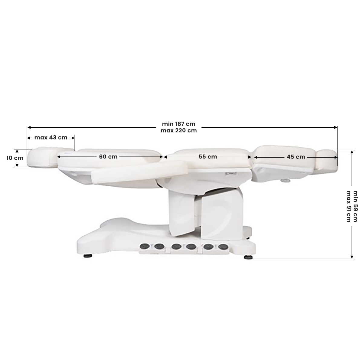 Un scaun cosmetic electric unic, ideal pentru saloanele de frumusețe și saloanele SPA. Datorită motoarelor independente, vă permite să reglați scaunul în 4 planuri prin intermediul unui control la distanță și a comutatoarelor de picior, oferind posibilitatea de tratamente confortabile pentru față și corp. Prin utilizarea controlului la distanță, putem folosi setările programate și porni funcția HOT, adică încălzirea. Scaunul folosește tapițerie perforată, neîntâlnită în alte scaune, și iluminare colorată LED a bazei.