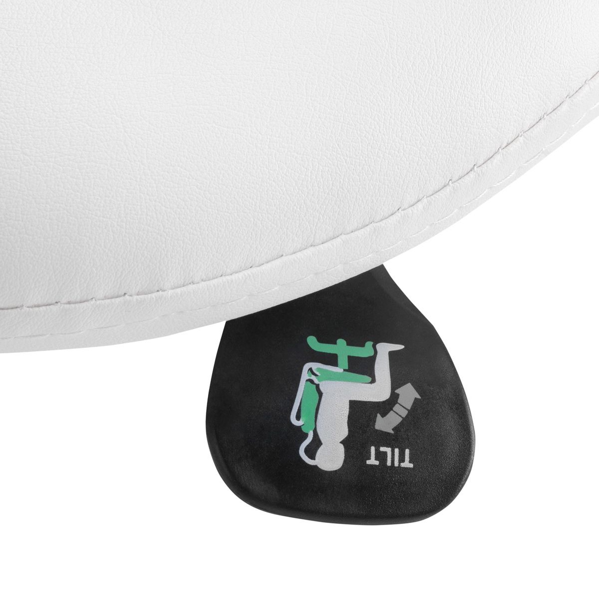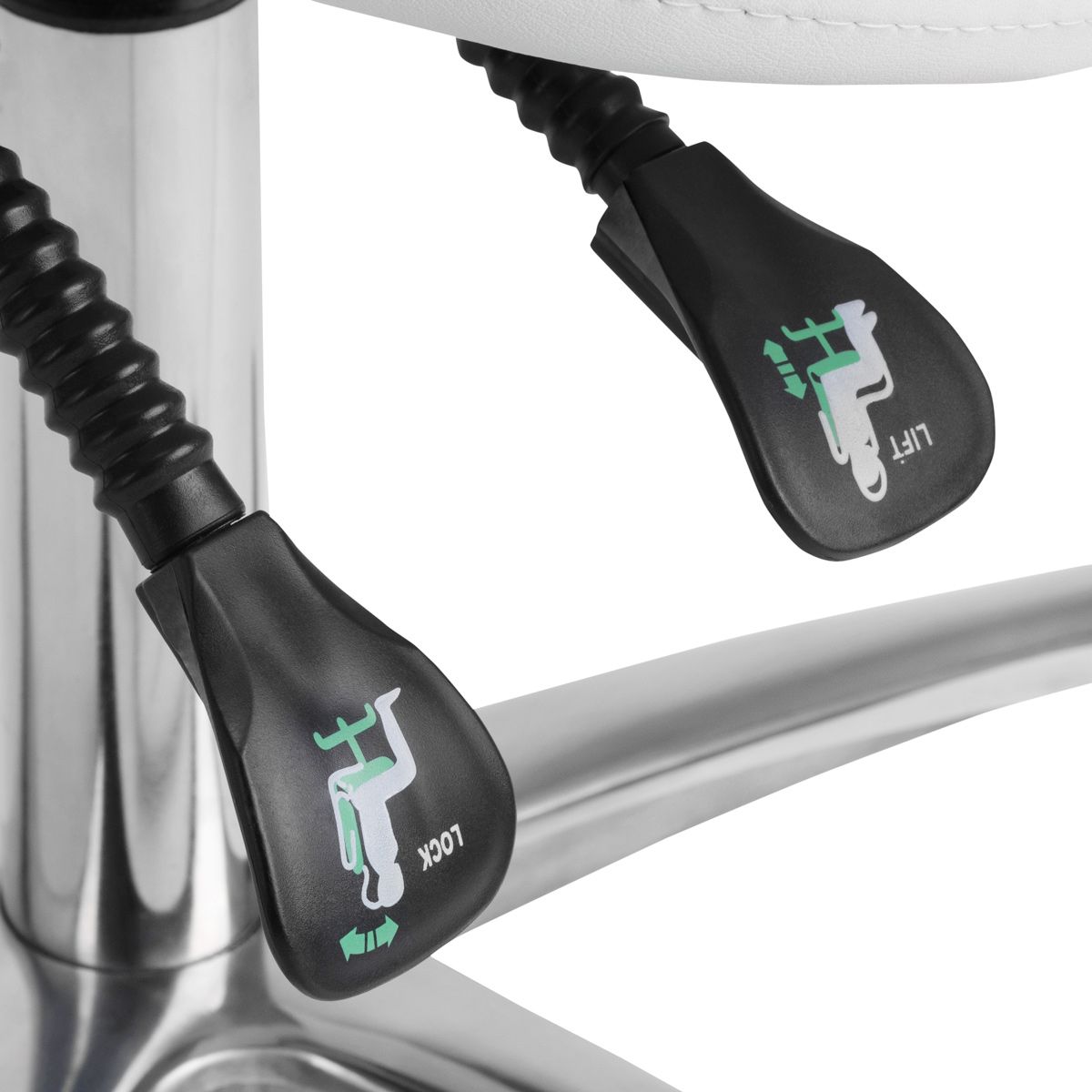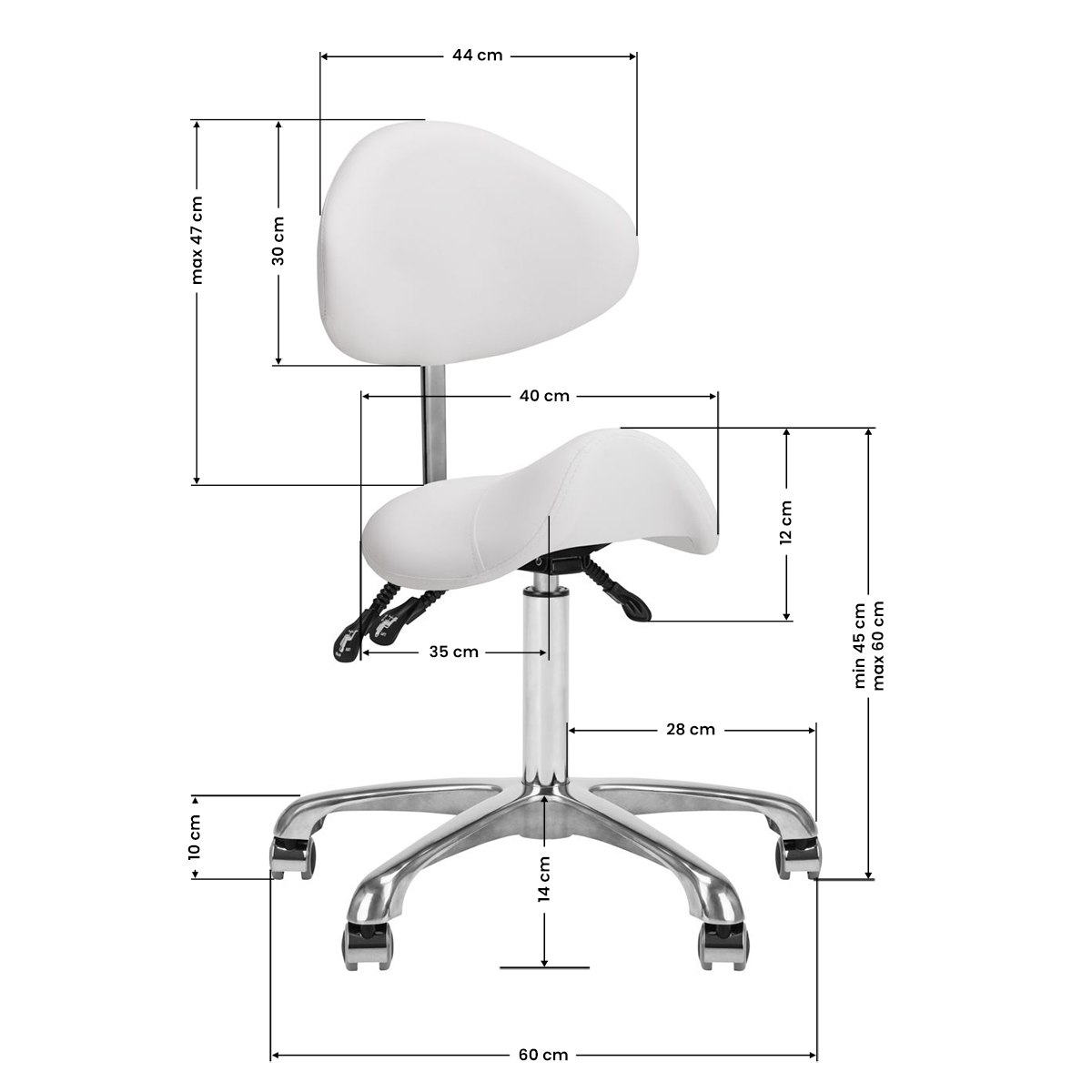 Scaun cosmetic confortabil, exclusivist, stabil, cu spătar și șezut profilat, pe o bază cu cinci stele, foarte stabilă. Reglabil în trei planuri: