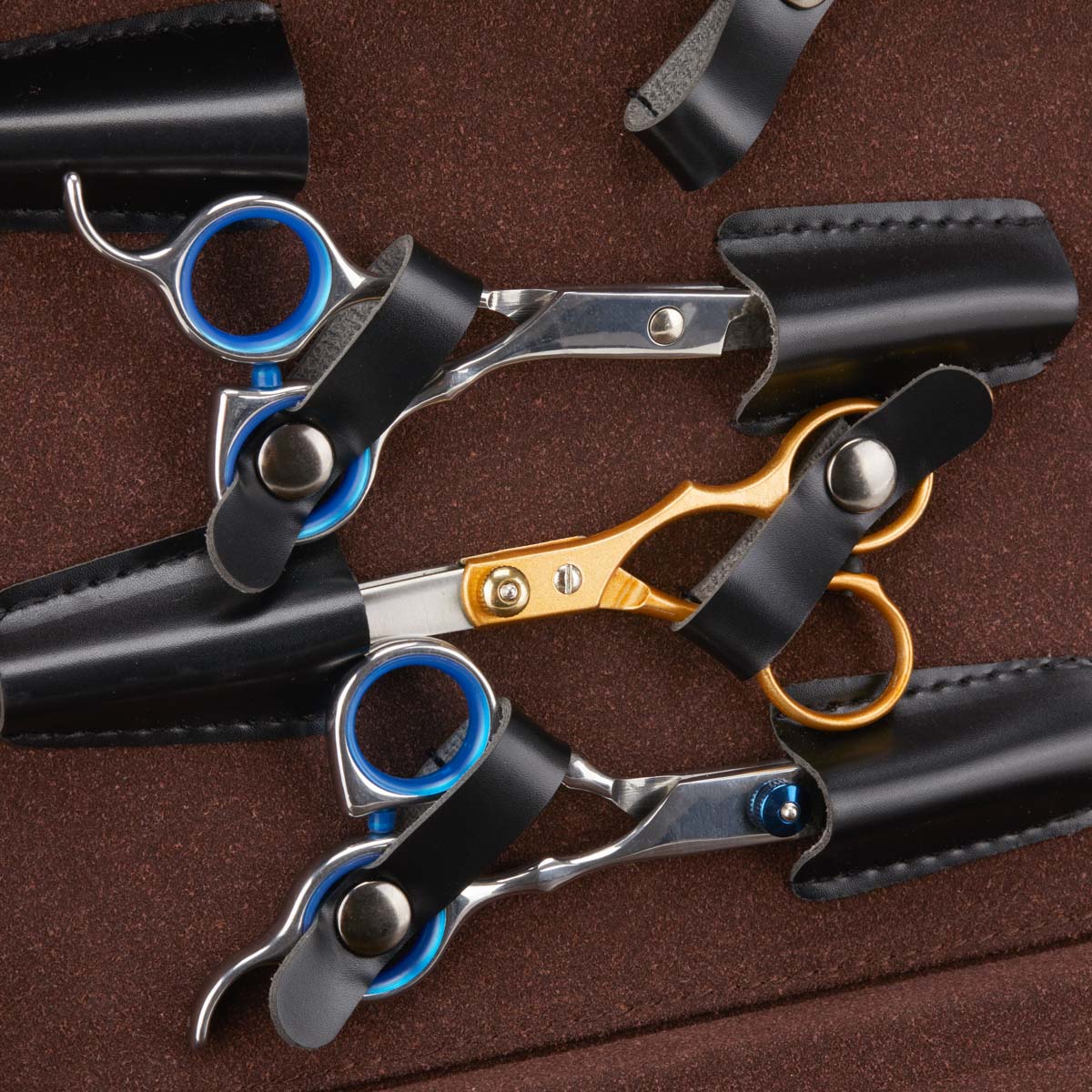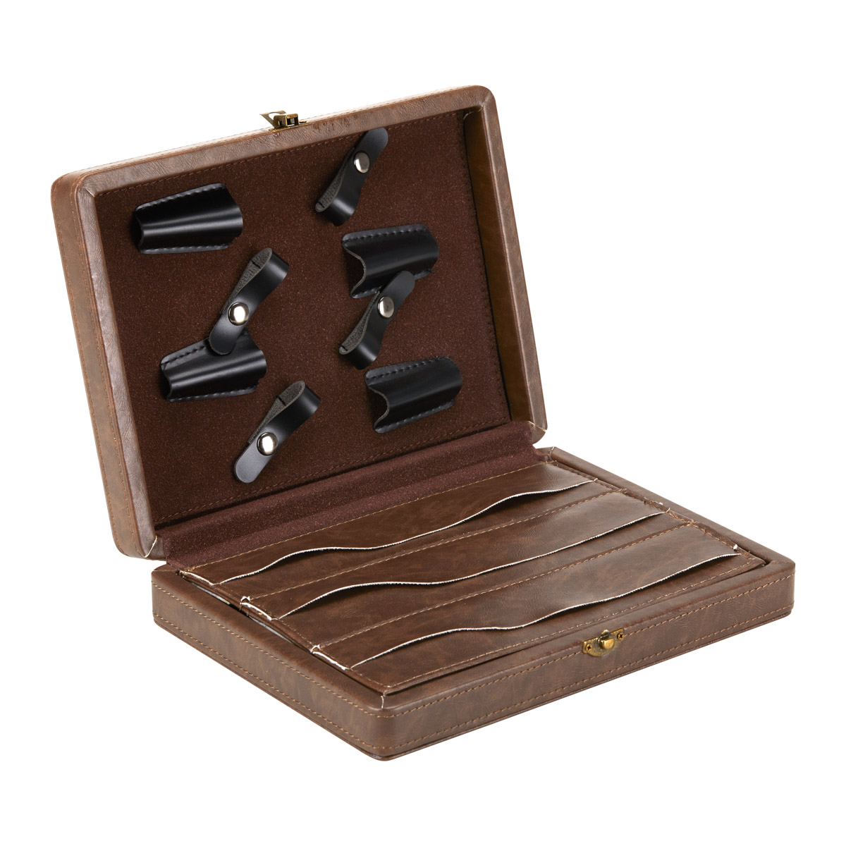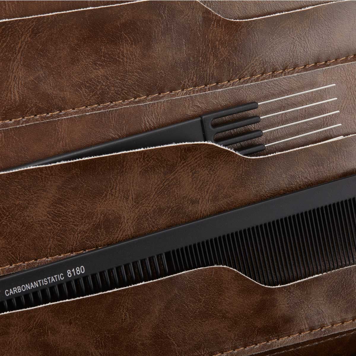 Organizator elegant și practic pentru foarfece acoperit cu piele ecologică.