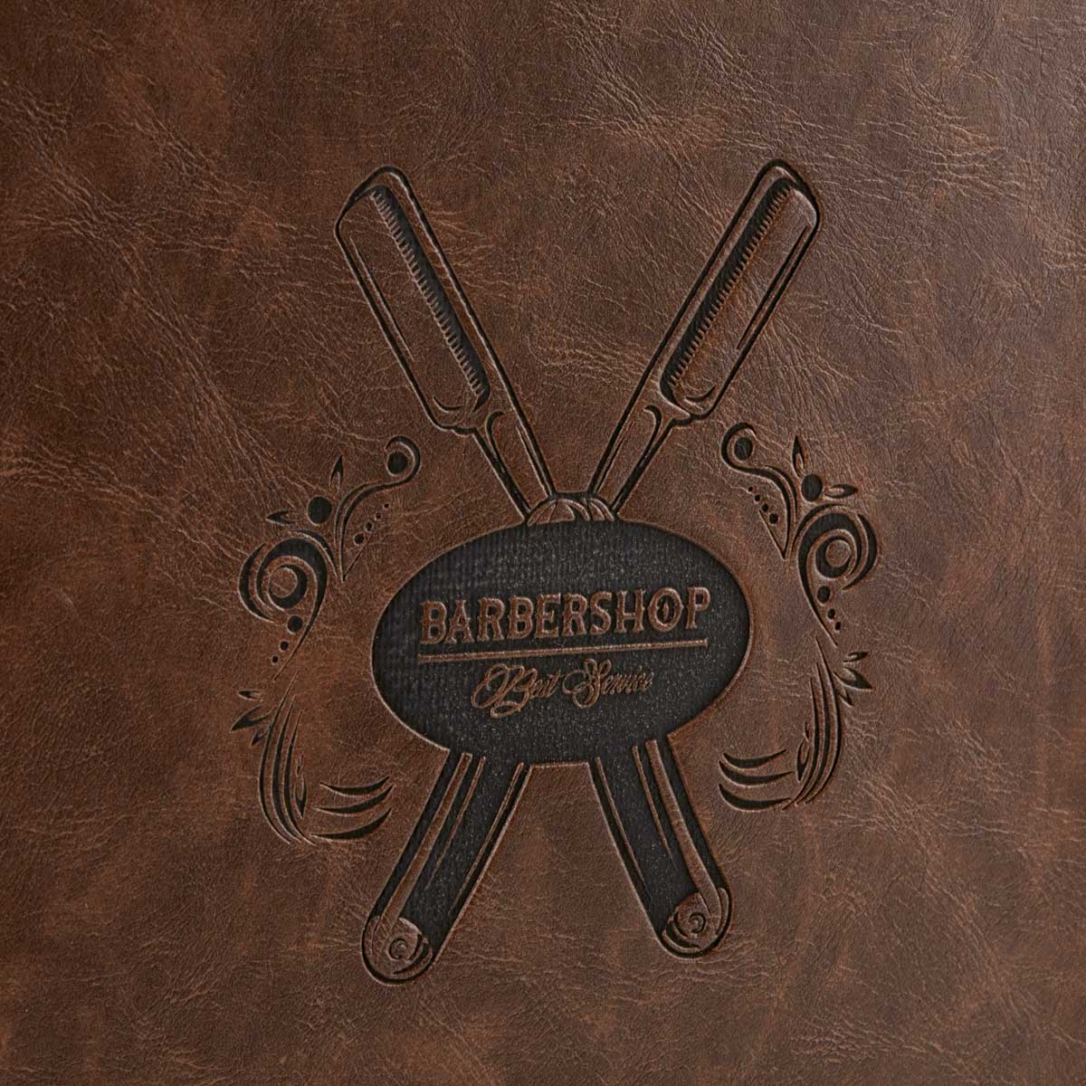 Pe partea din față există o grafică embosată cu temă de coafură.