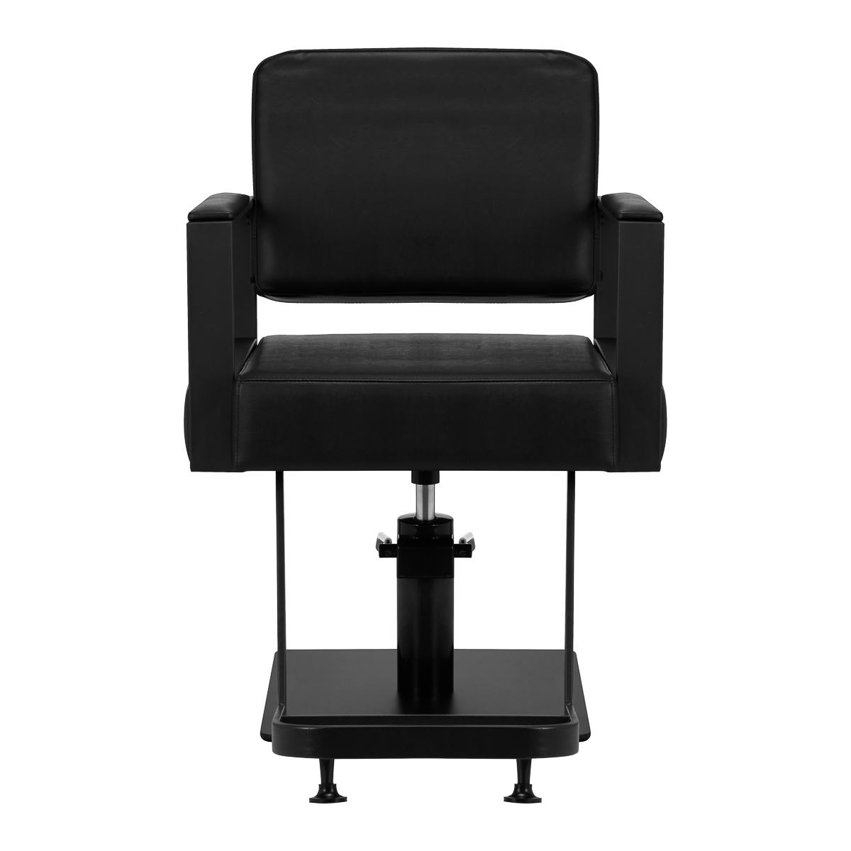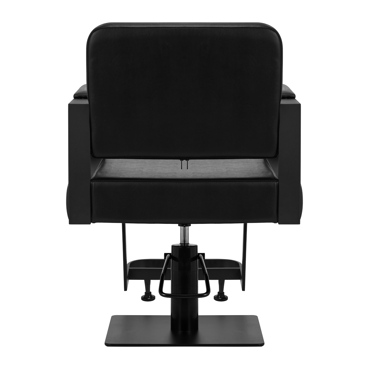 Echiparea scaunului cu un mecanism complet de rotație face munca coaforului mai eficientă și confortabilă. Baza solidă, plată, în formă de pătrat garantează stabilitate în timpul utilizării. Suprafața mată, finisată, netedă oferă elementului un aspect elegant și ușurință în curățare. Un scaun confortabil cu umplutură din spumă asigură un confort ridicat de utilizare, chiar și în timpul multor ore de tratamente. Brațele geometric, parțial tapițate, permit poziționarea corectă a umerilor clientului - acest lucru înseamnă că nu își îngropă capul în umeri sau nu se cocoșează - facilitând în mod clar efectuarea tratamentelor precise, inclusiv tunsori.