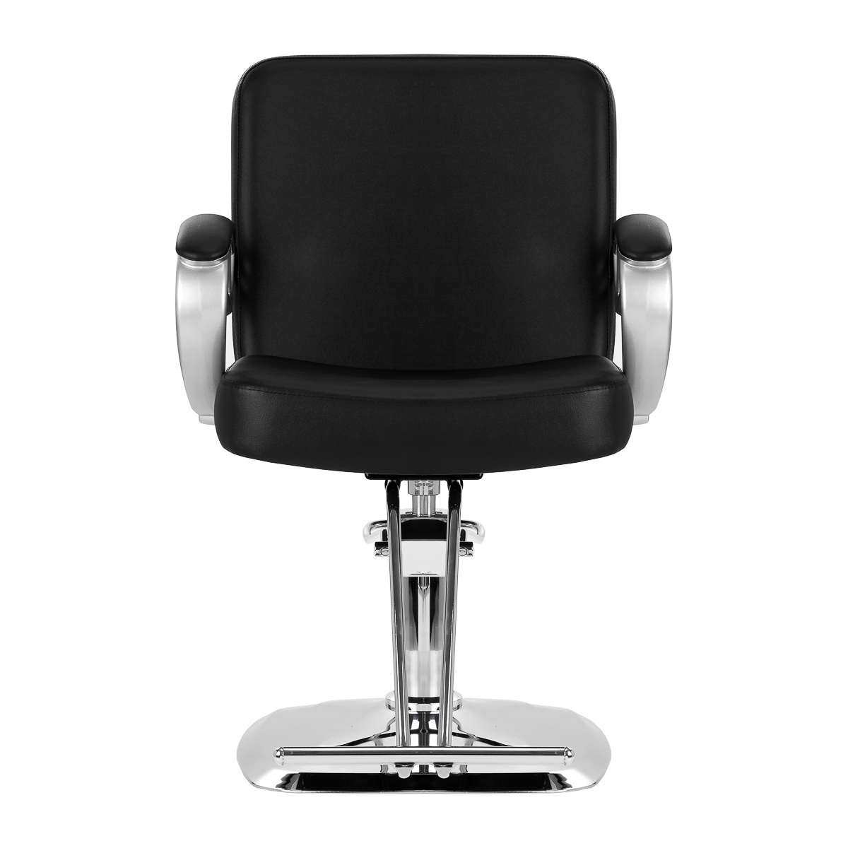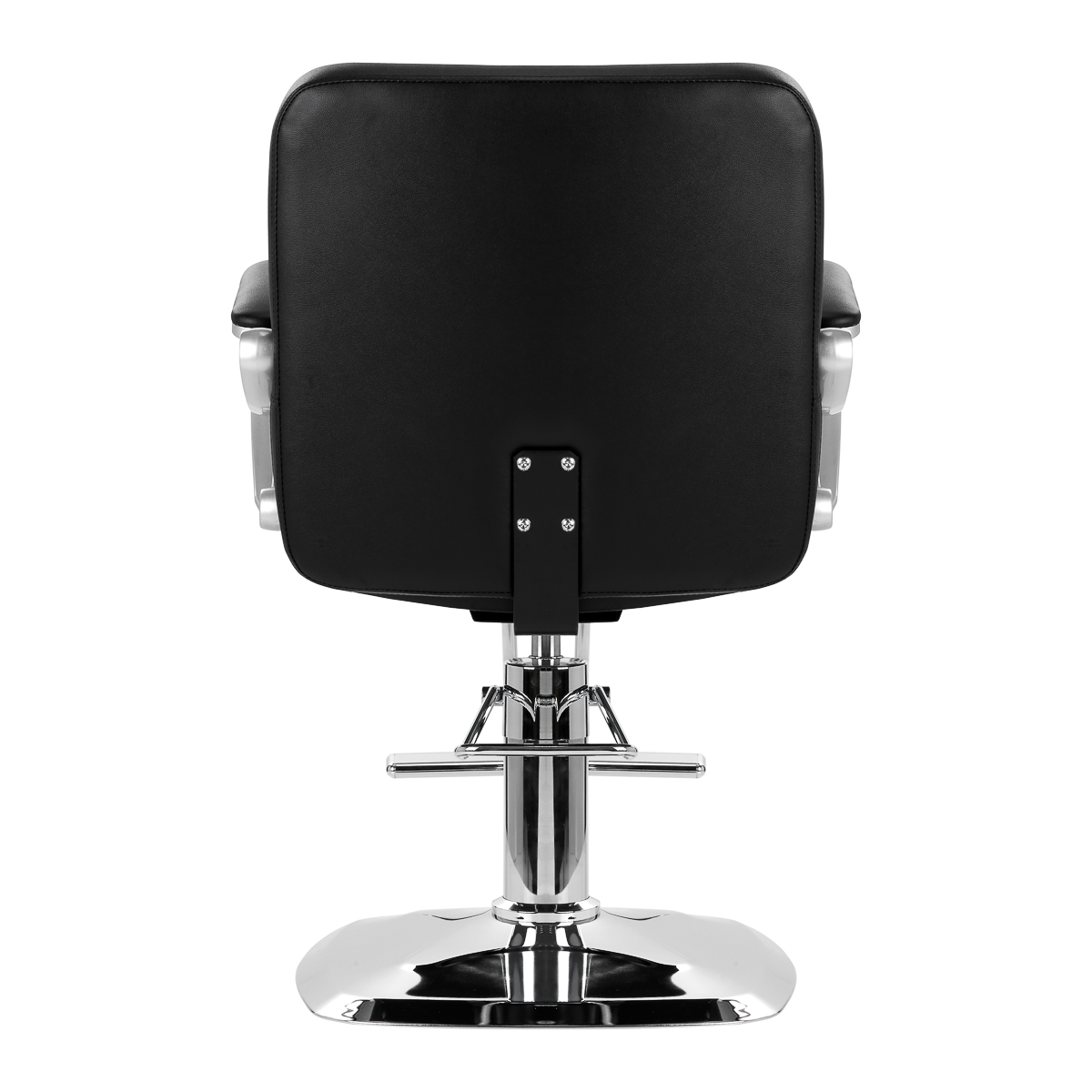 Baza solidă asigură stabilitatea în timpul utilizării, iar suprafața sa cu finisaj oglindit este ușor de menținut curată. Scaunul confortabil este umplut cu spumă durabilă pentru a asigura un confort ridicat în utilizare, chiar și în timpul multor ore de tratamente. Brațele parțial tapitate sunt un element vizual interesant, iar datorită modelării adecvate, ele permit poziționarea corectă a umerilor clientului. Datorită acestui lucru, el nu își ascunde capul în umeri sau nu se apleacă – ceea ce facilitează mult efectuarea procedurilor precise, inclusiv tunsorile. Echiparea scaunului cu un mecanism complet de rotație face munca coafezei mai eficientă și mai confortabilă.
