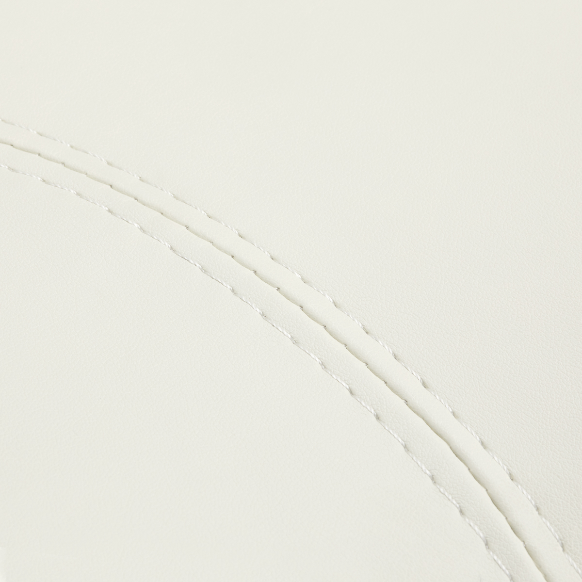 Baza cu cinci stele, proiectată corespunzător face taburetul stabil, chiar și în timpul lucrului intensiv. În plus, este echipat cu roți, ceea ce face mai ușor de mutat. Scaunul este stabil și durabil. Tapiteria este realizată din piele ecologică în nuanțe de alb; datorită folosirii unui astfel de material, este rezistentă la umiditate și ușor de curățat.