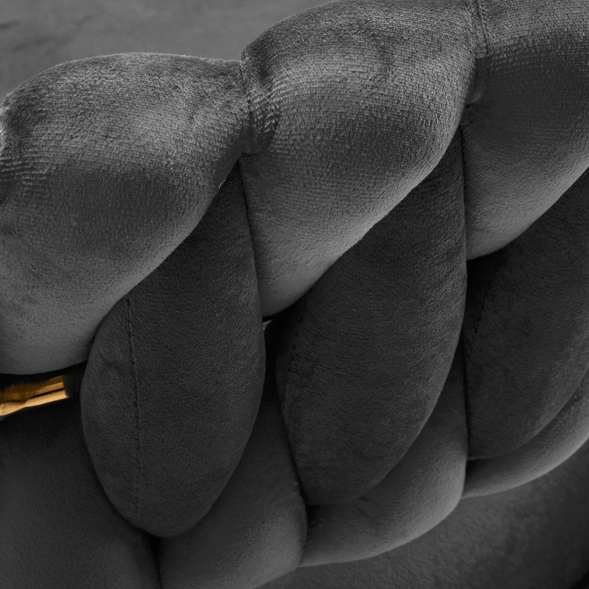 Finisajul face mobilierul atrăgător. Tapiteria plăcută la atingere, de catifea în nuanțe de gri, îi conferă un caracter unic. Baza în nuanțe de aur adaugă eleganță, potrivindu-se perfect cu catifeaua. Rotițele funcționale oferă mobilitate, facilitând mutarea scaunului și deplasarea în salon în timpul lucrului. Lucrarea atentă, confortul de utilizare și materialul estetic împletit pe spătarul profilat fac ca scaunul să îndeplinească cerințele chiar și celor mai exigente utilizatori.