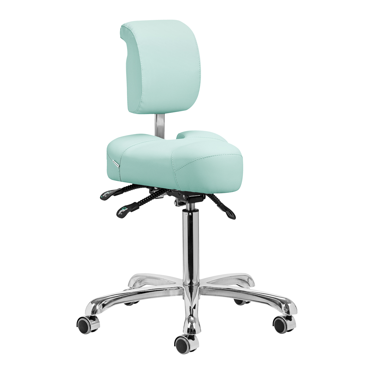 Înălțimea reglabilă în intervalul 55-72 cm permite adoptarea poziției corecte în timpul efectuării serviciilor. Spătarul reglabil perfect conturat oferă suport optim pentru regiunea lombară, minimizând oboseala în timpul lucrului prelungit. Mecanismul complet de rotație face munca mai eficientă și confortabilă. În plus, scaunul dispune de o funcție de blocare a leagănului, permițând poziționarea ergonomică a corpului. Scaunul permite inclinarea și reglarea înălțimii prin cilindri de gaz, iar înălțimea spătarului poate fi ajustată manual pentru confort complet.