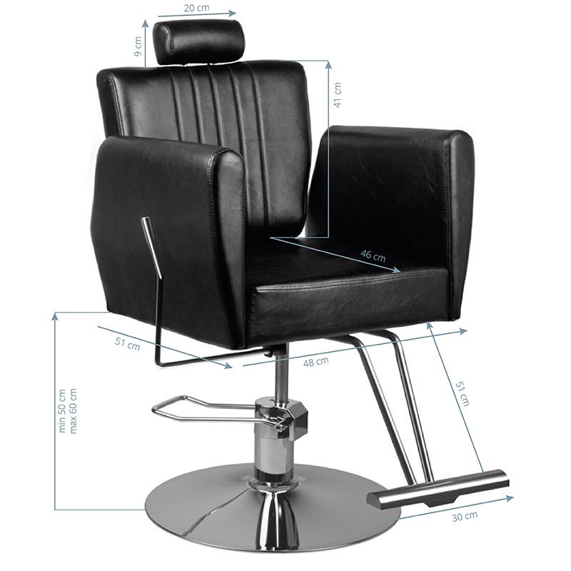 Baza solidă cromată a scaunului garantează o stabilitate excepțională, oferind un loc sigur pentru fiecare client. Tapiteria sa moale este fabricată din eco-piele neagră de înaltă calitate, oferind atât durabilitate, cât și un strop de lux.