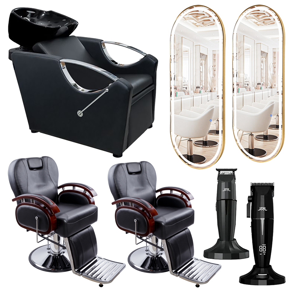 La cel mai apropiat barber store nu găsești Kit mobilier frizerie scafa + 2 scaune + 2 oglinzi + masina de tuns si contul JRL 02?