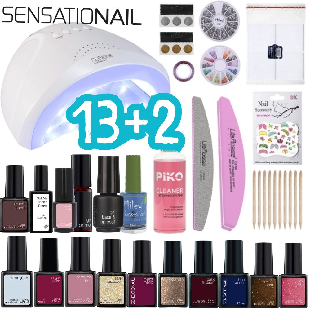 La magazinul de manichiura cel mai apropiat de tine nu găsești Kit Oja Semipermanenta 13 culori SensatioNail – Lampă UV + Base & Top Coat + Ultradond?