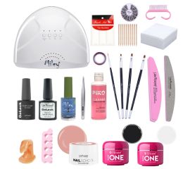 Kit unghii gel "Perfect Winter" Lila Rossa NailSchool cu lampa uv led sunone + 36 geluri color+degresant + primer + top + baza + decoratiuni + tipsuri + accesorii Kitul "Perfect Winter" cuprinde toate produsele necesare pentru o manichiura cu gel UV....