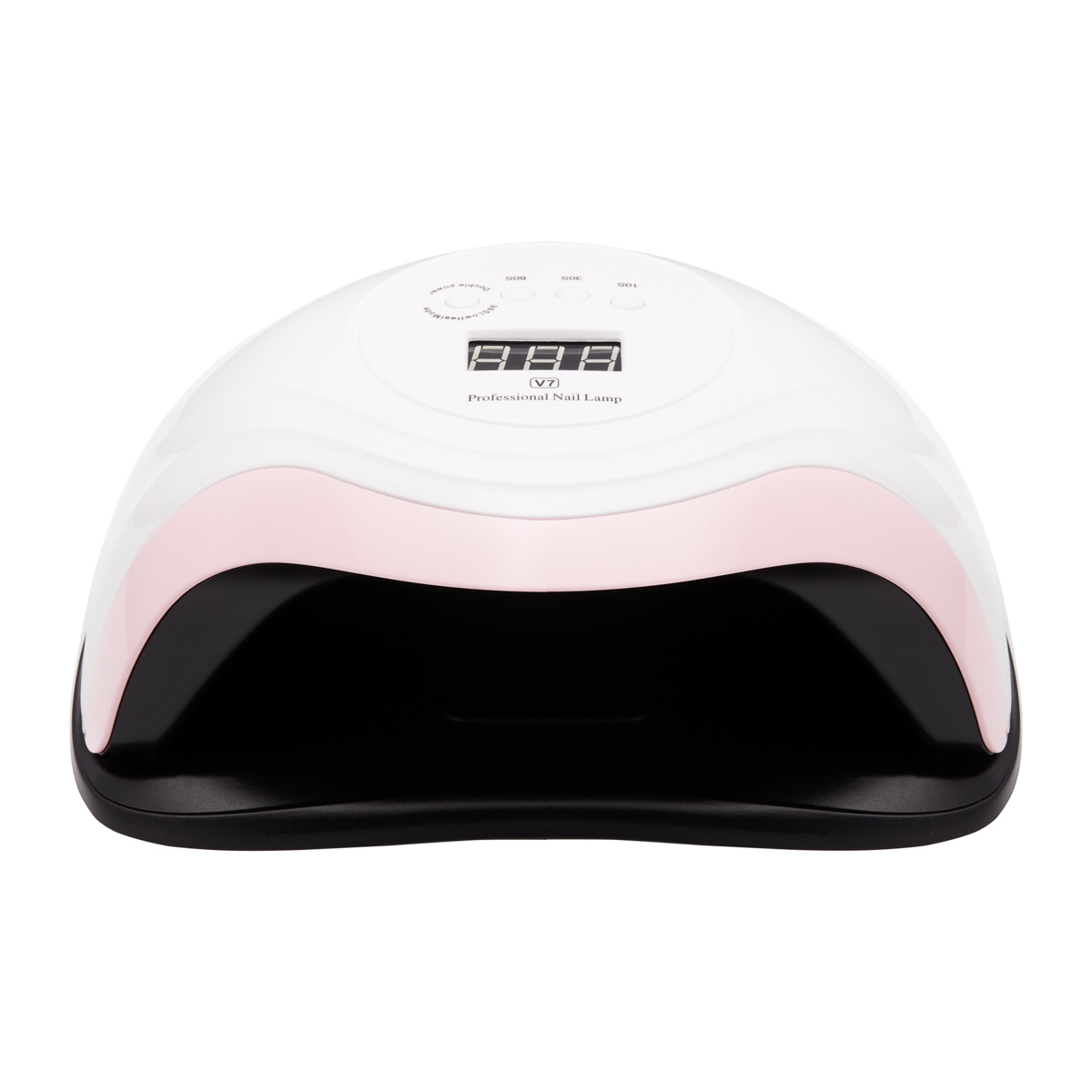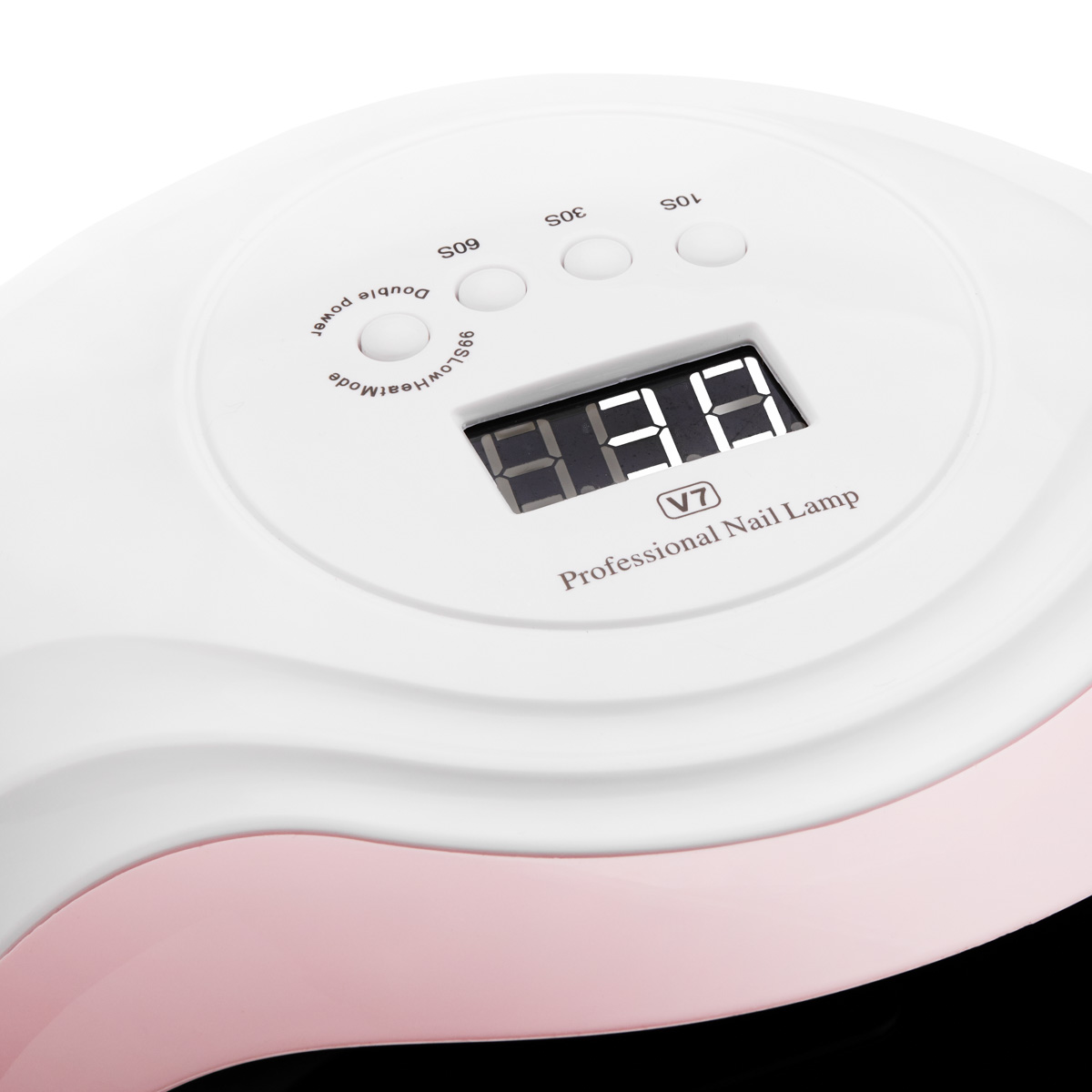 Cea mai recentă generație, lampă UV / LED profesională care vindecă rapid și uniform toate gelurile, lacurile hibride și alte preparate fotosensibile datorită tehnologiei LED duale. Emite lumină albă care nu obosește vederea. Lampa V7 are o sursă de lumină cu consum redus de energie și o dublă lungime de undă de 365nm și 405nm. În plus, 36 de LED-uri care oferă o putere totală maximă de 168W! Lampa are un senzor de mișcare încorporat, un cronometru de 10, 30, 60 și 99 de secunde, iar după activarea senzorului, luminează continuu timp de 99 de secunde. Modul "Low Heat" de 99 de secunde este un mod în care puterea lămpii crește treptat la fiecare 30 de secunde. Reduce senzația de arsură în timpul aplicării gelurilor de construcție. Ecranul electronic mare facilitează controlul timpului.