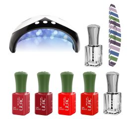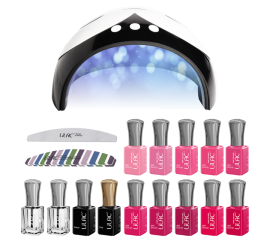 Kit oja semipermanenta Lilac, 14 oje, 10 Pink Colors + Top Coat + Base Coat + Nail Prep + Ultra Bond, Lampa 36 W, pila unghii si buffer Lampa UV Liliac 36W asigura o polimerizare rapida si eficienta a ojelor semipermanente si a gelurilor UV, indiferent de pigmentare sau tip de...