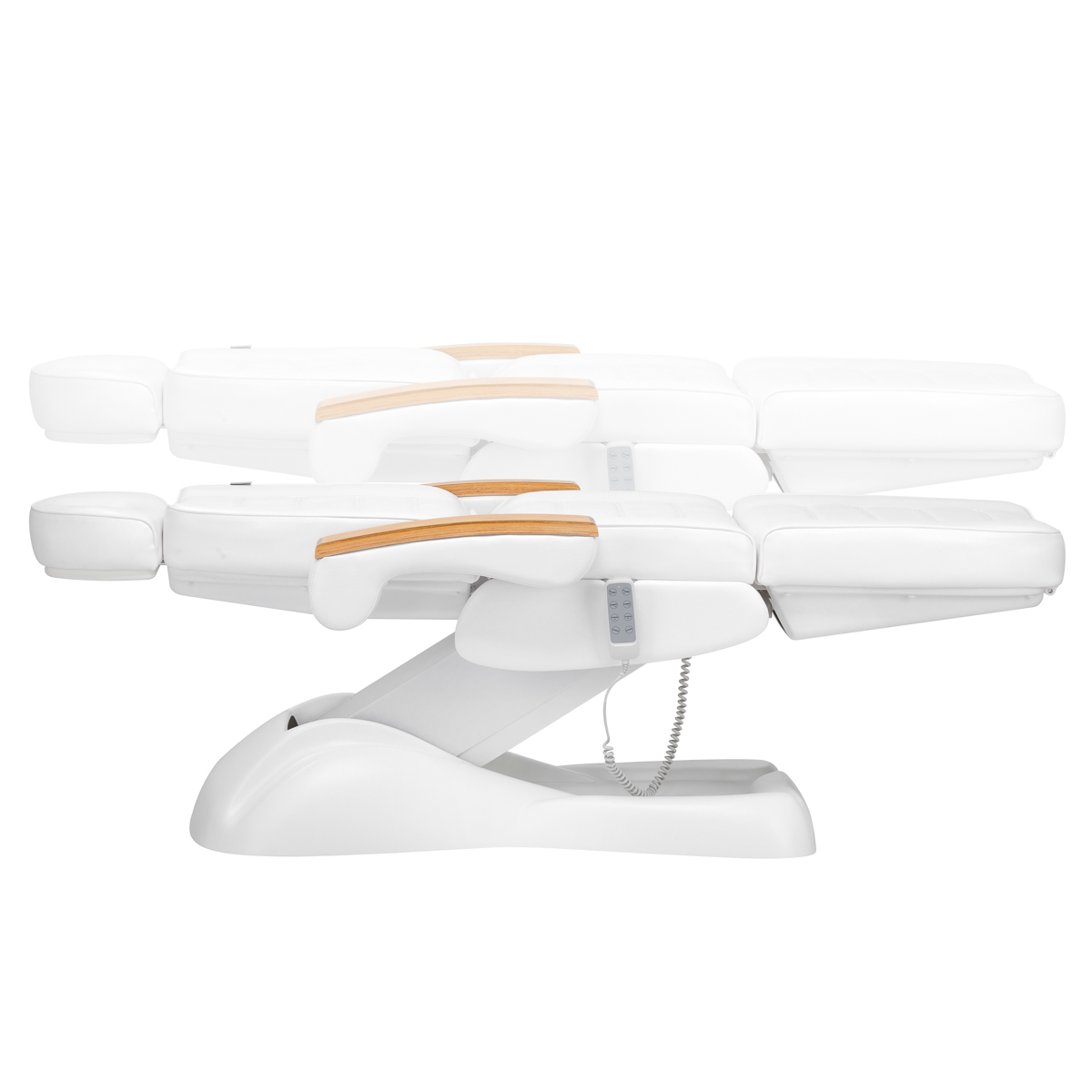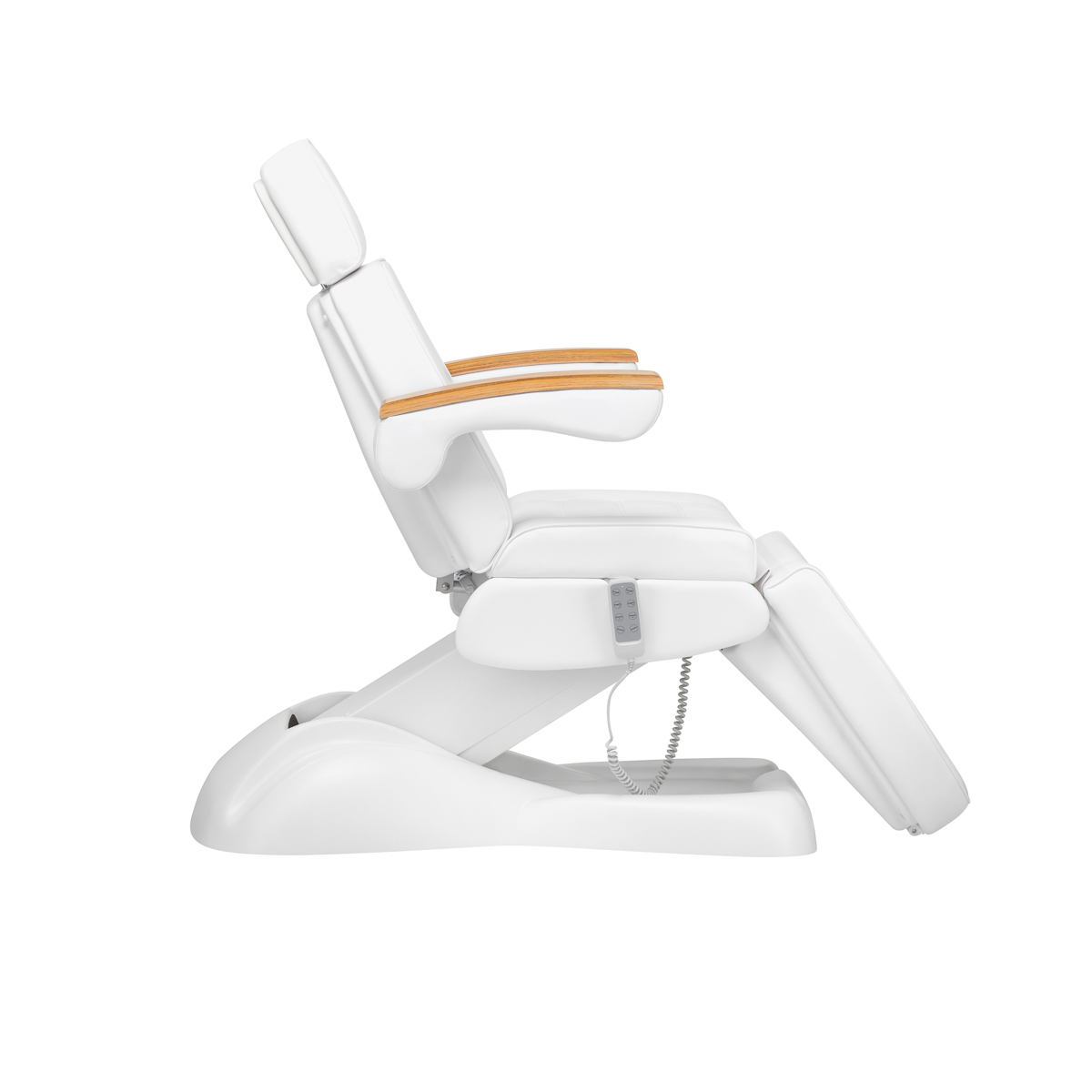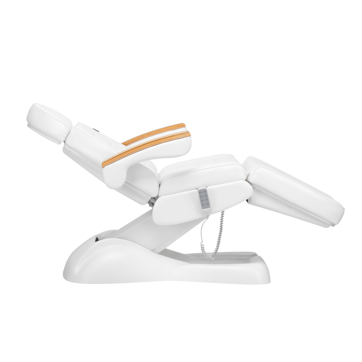 Using an intuitive remote control, the armchair can be smoothly adjusted in four planes – it has height adjustment, backrest and footrest angles, and a cradle function. This allows you to freely adjust the position according to the treatment being performed at the time, which affects both the comfort of the user and the person performing the services.