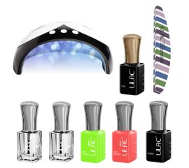Kit oja semipermanenta Lilac, Start 6 oje + lampa 36 W + pila unghii - Neon colors  Lampa UV Liliac 36W asigura o polimerizare rapida si eficienta a ojelor semipermanente si a gelurilor UV, indiferent de pigmentare sau tip de gel UV. Lampa are un design...