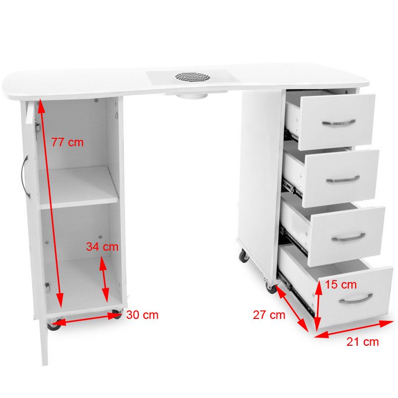 Calitatea este cel mai important element pe care punem preț. Astfel, produsul Masa manichiura cu aspirator 2027 with two Alb cabinets este fabricat și depozitat la standarde ridicate. Este perfect pentru manichiura TA!