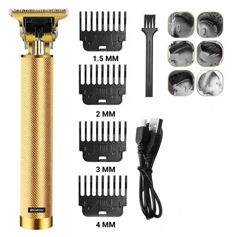 Masina de tuns Karemi cu acumulator, trimmer, incarcare USB, K-T9-3, auriu