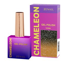 Oja semipermanenta Zenail Chameleon 10 ml Oja semipermanenta Chameleon thermo ZENAIL, realizata din rasini cu uscare UV, cu o schimbare magica de culoare care depinde de schimbarea temperaturii. Datorita pigmentilor termosensibili din microcapsule care schimba...
