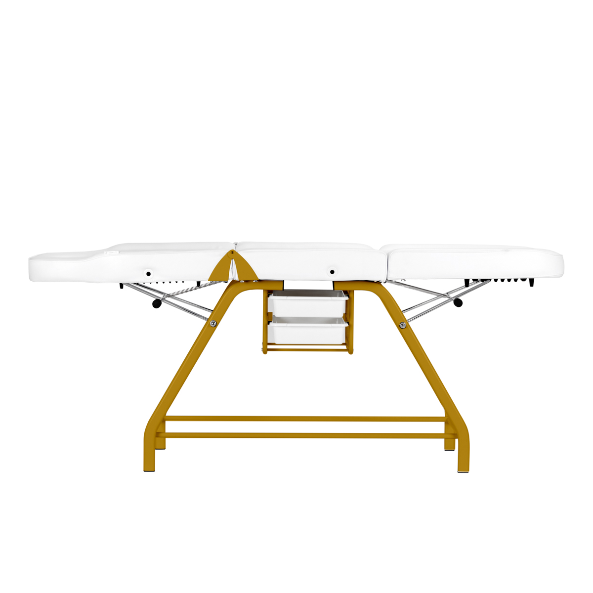 The armrests provide the user with adequate support and comfort during treatments. If necessary, they can be easily removed, so that the person performing the services has easier access to the areas on which he is working at the moment. These elements, which are divided in half, are movable, so they fit well when changing the backrest position.