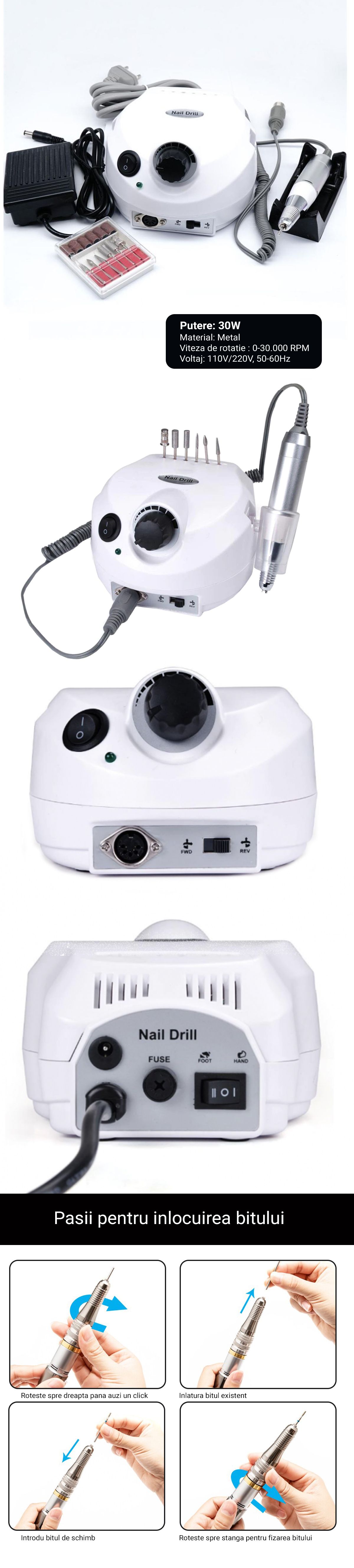 Pasionaţii de Freză electrică unghii pot comanda produsul Pila electrica, freza de unghii, Miley, alba, 30.000 rpm, 30 W la orice oră din zi sau din noapte.