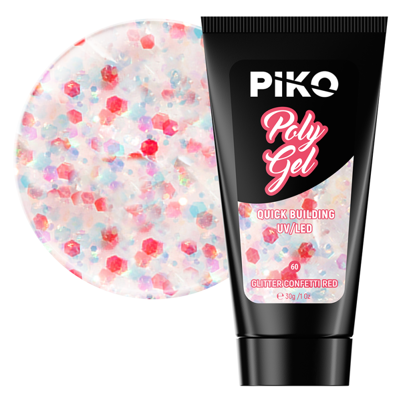 La magazinul de manichiura cel mai apropiat de tine nu găsești Piko Polygel 60 Glitter Confetti Red?