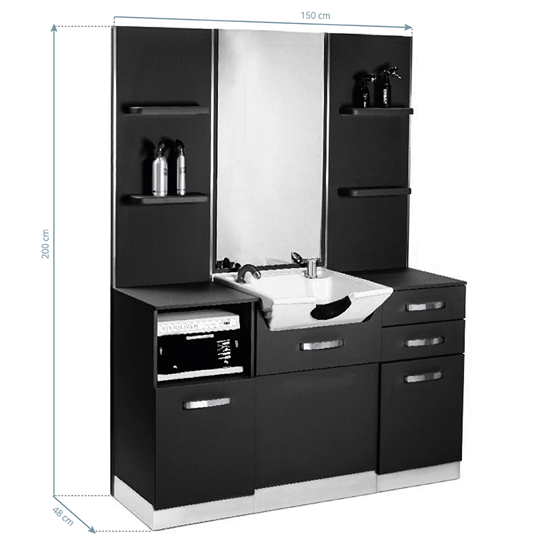 Post de lucru coafor frizerie cu oglinda BarberShop Gabbiano b085 Negru