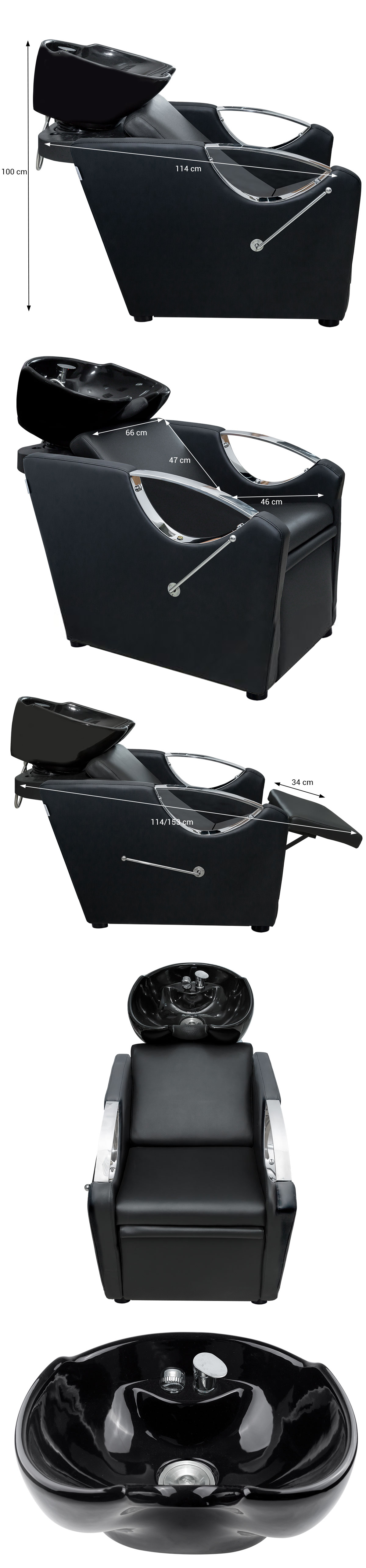 Unitate de spalare de culoare neagra, cu bazin ceramic MOBIL ce permite clientului sa se aseze intr-o pozitie confortabila indiferent de inaltimea acestuia.