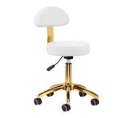 comfortable, stable cosmetic stool with a contoured seat and ergonomic backrest. mounted on a five-star base with sensational rubber and ball-bearing roll speed wheels, which guarantee ease of movement. made of white eco-leather.