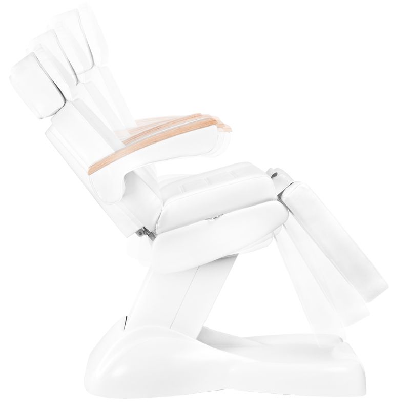 telecomanda completă facilitează munca. Husa scaunului, ușor de spălat, este fabricată din eco-piele care respectă cerințele stricte ale UE. în plus, brațele sunt finisate cu lemn, ușor de îndepărtat dacă este necesar, iar orificiul din tetieră permite masajul.