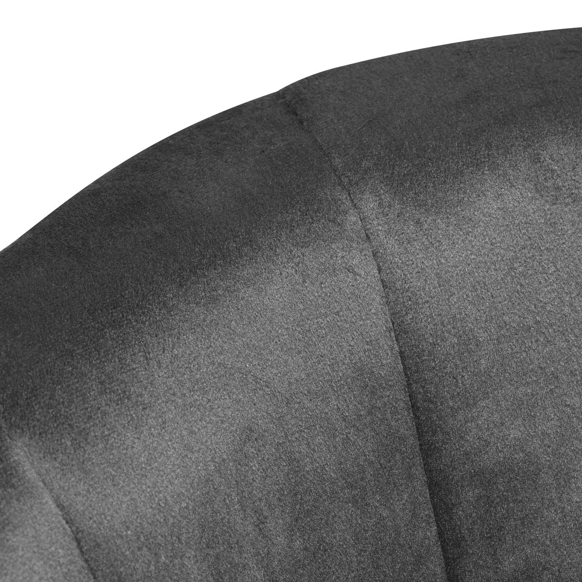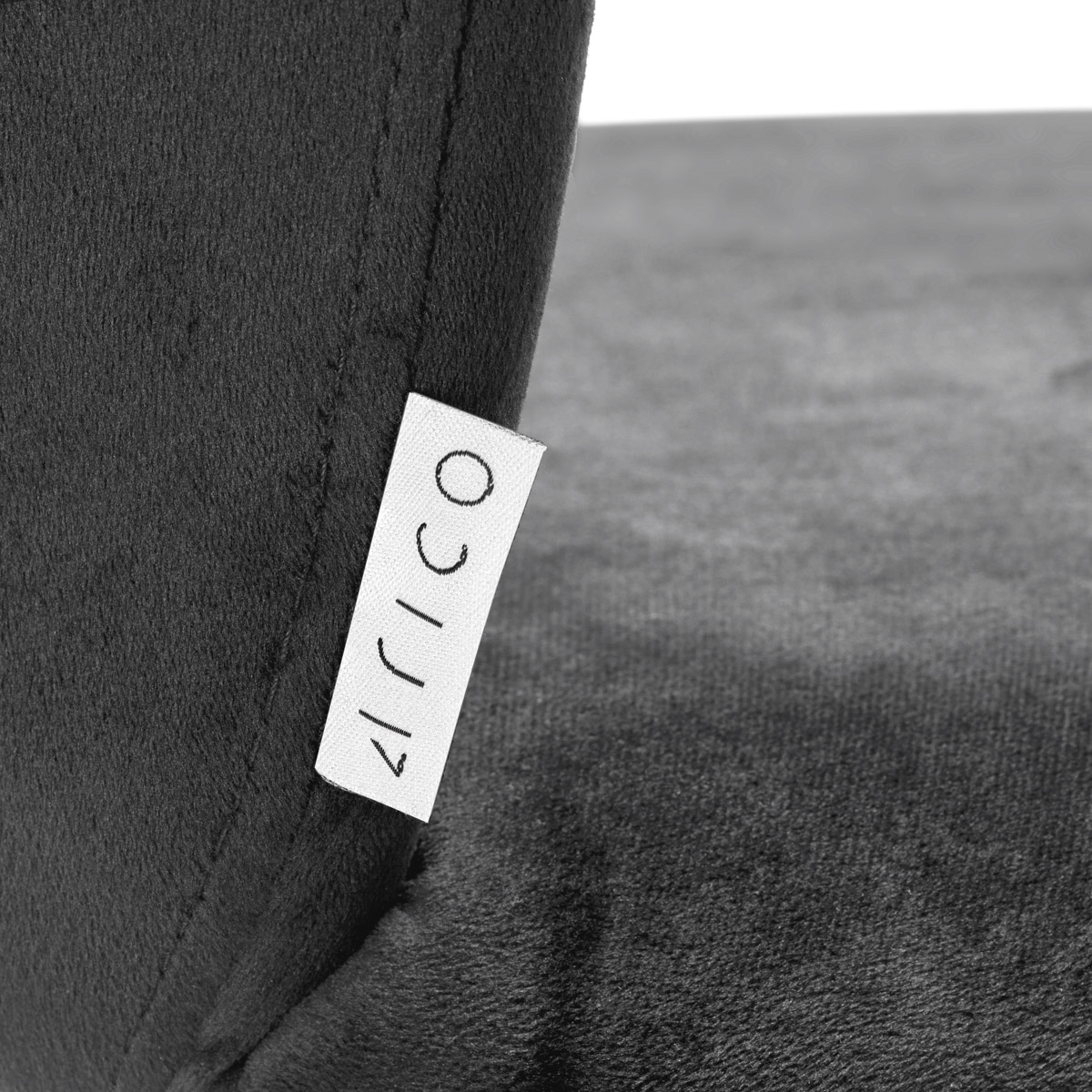 Pleasant-to-the-touch, velvet upholstery in shades of gray gives the hocker an exclusive character, and aesthetic stitching on the backrest, imitating the shape of a shell, emphasize the unique appearance of the furniture. The minimalist finish makes the piece of furniture fit perfectly into any interior. The matte-finished frame in shades of black adds elegance and prestige, perfectly matching the velvet.