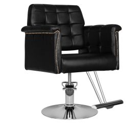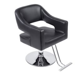 scaun modern pentru sistemul de coafură de la hair system. Elegant și foarte confortabil. Baza solidă cromată garantează stabilitatea scaunului. Tapiterie din eco-piele neagră de înaltă calitate. Scaunul este reglabil în sus și în jos.
