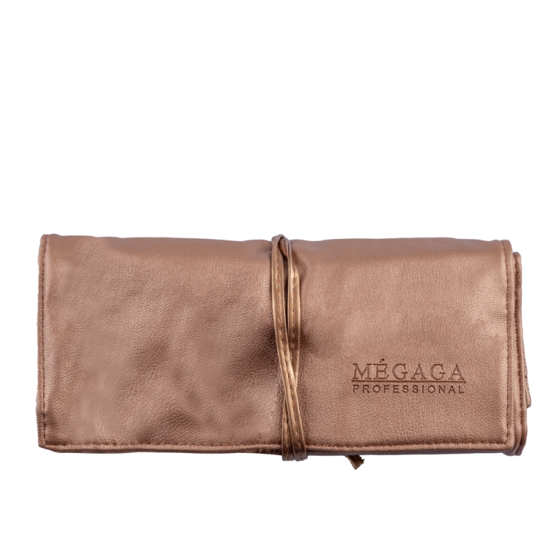 Set pensule makeup cu husa aurie, Megaga 18 buc