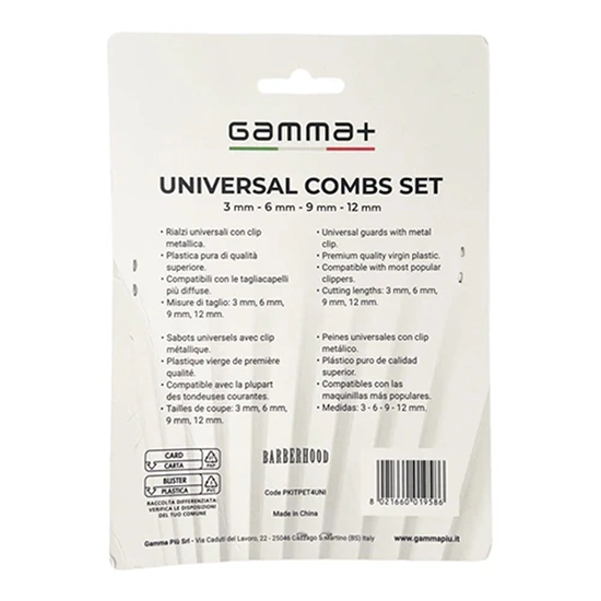 Gamma+ aduce in atentia tuturor frizerilor un set de gratare (magnetice) universale ce usureaza munca tuturor atat in uzul profesional cat si in cel casnic. Setul contine 4 gratare cu dimensiunile 3mm, 6mm, 9 mm, 12 mm