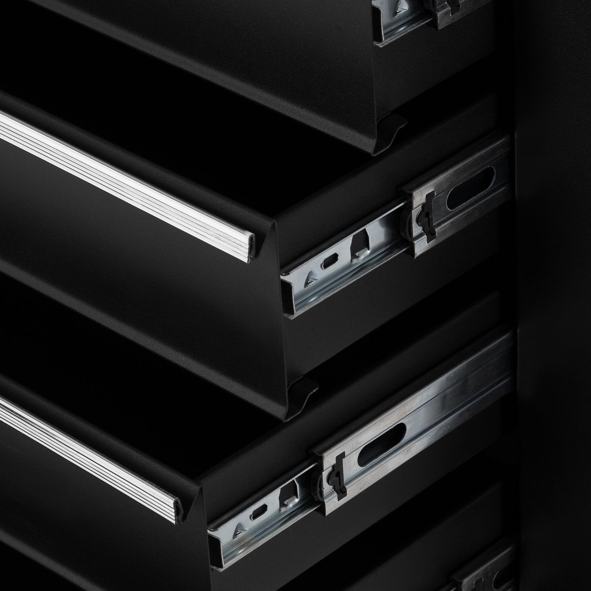 The Pro Ink 005 assistant is a model designed for the extended tattoo station. Stable construction, minimalist form and deep black give the piece of furniture a modern, professional character which perfectly matches the style of the tattoo studio.