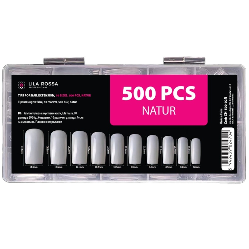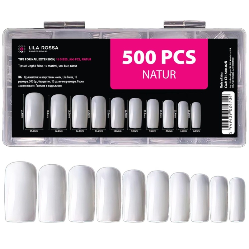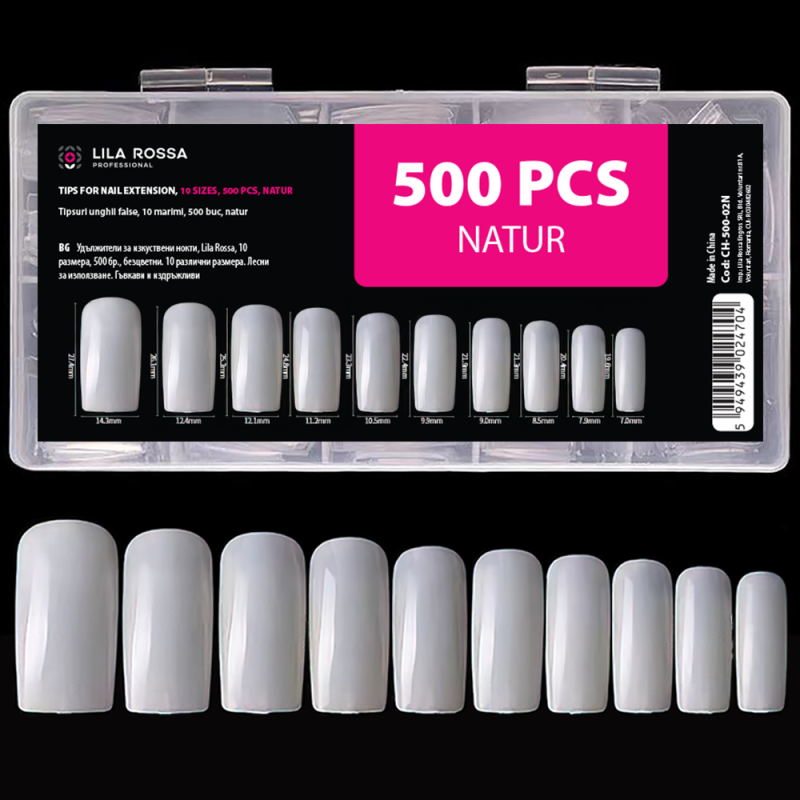Tipsuri unghii false 500 buc, Lila Rossa, Natur