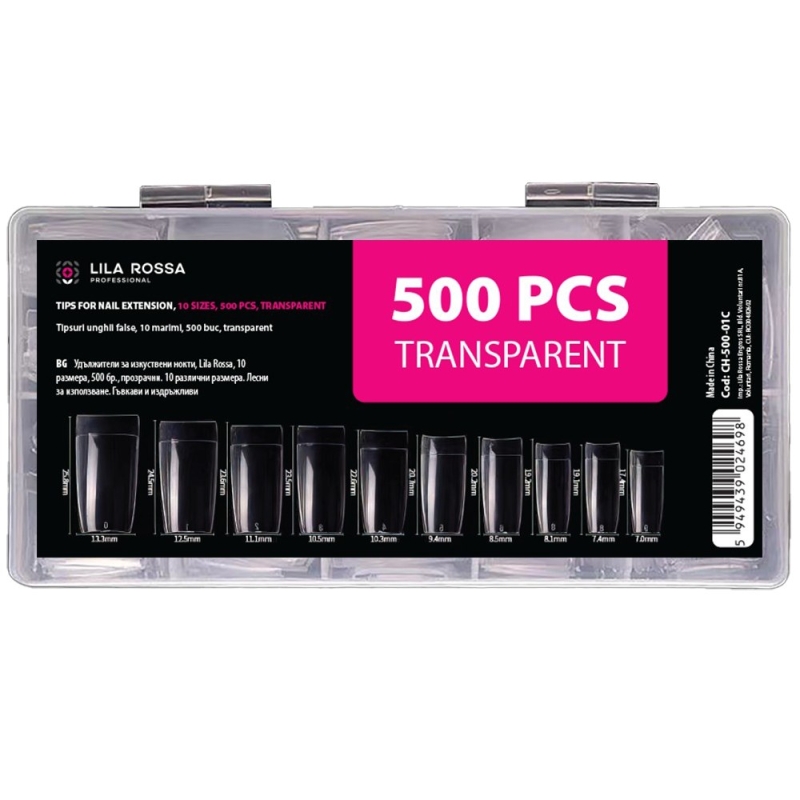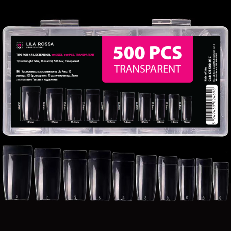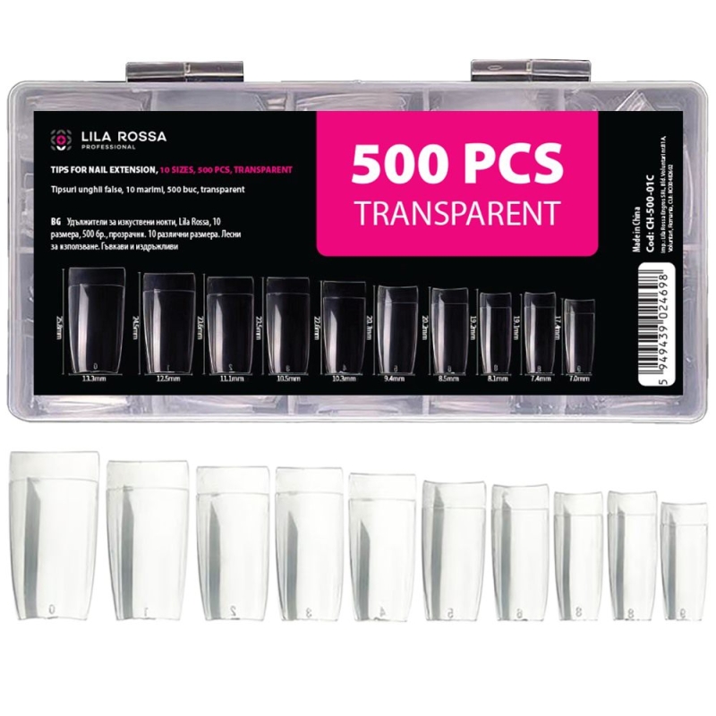 Tipsuri unghii false 500 buc, Lila Rossa, Transparent