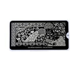 MarcaLila Rossa GamaRomantic Collection Tip produsMatrite pentru unghii TematicaValentine's day, Linii si forme, Pasari, Inimioare