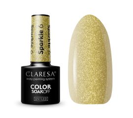 CLARESA Hybrid nail polish SPARKLE 6 -5g Gold has many names. The color Sparkle 6 is an exceptionally luminous, pure shade of light gold. It shines like the most beautiful fireworks on New Year's Eve! With this color you will create a golden total look by using it in various types of...