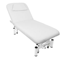 high performance couch, especially for physiotherapy treatments. equipped with 1 motor, the height is electrically adjustable, the backrest and the inclination are manually adjustable. the headrest is a cushion with a vent. a durable metal bent base with retractable and casters...
