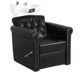 stylish hairdressing salon.  very comfortable, it fits perfectly into the interiors of elegant living rooms. very stable and solid, with a mechanically lifted footrest .. upholstery made of the highest quality black eco-leather.