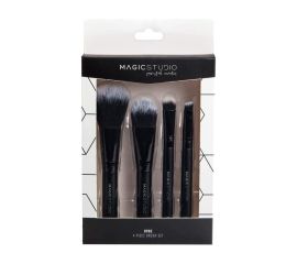 Set de pensule pentru machiaj format din: -Pensula de pudra -Pensula pentru fond de ten -Pensula pentru fard de pleoape -Perie pentru sprancene Intretinere: Pensulele - la fel ca bureteii de make-up,  pot fi spalate cu usurinta acasa folosind sapun antibacterian lichid...