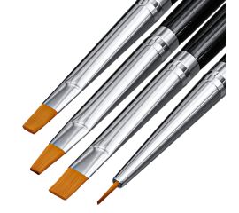 Set 4 pensule Miley, pentru manichiura Setul de 4 pensule de la Miley este esential in manichiura cu gelul UV. Una dintre ele este pentru trasarea liniilor fine si pictura, iar celelalte trei te vor ajuta in aplicarea gelului UV. Faricate din par...