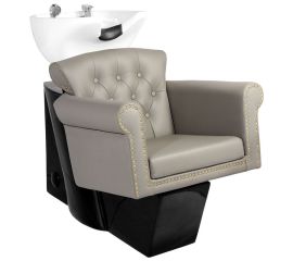 stylish hairdressing salon.  very comfortable, it fits perfectly into the interiors of elegant living rooms.  very stable and solid. upholstery of the highest quality black eco-leather. gray car wash base.