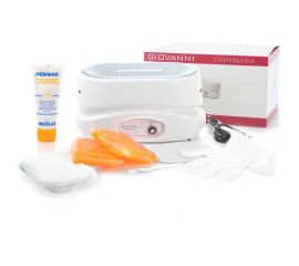 the kit includes: * giovanni 220w paraffin wax * lemon paraffin 500 gram - 2 pcs * glove terry cloth - 2 pcs * disposable foil gloves - 100 pcs * cream for paraffin treatments paraffin set 220w giovanni is the perfect set for professional and home care for...