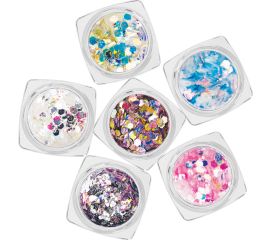 Set 6 nuante paiete pentru unghii, in culori vibrante, cu reflexii metalizate ce te ajuta sa scoti in evidenta stilul tau. Pot fi aplicate atat pe lacurile de unghii clasice, oja semipermanenta, gel UV, cat si pe acryl. Se sigilarea cu top coat, pentru o mai buna rezistenta in timp.