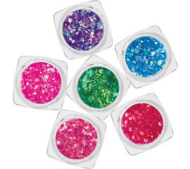 Set 6 nuante paiete pentru unghii, in culori vibrante, cu reflexii metalizate ce te ajuta sa scoti in evidenta stilul tau. Pot fi aplicate atat pe lacurile de unghii clasice, oja semipermanenta, gel UV, cat si pe acryl. Se sigilarea cu top coat, pentru o mai buna rezistenta in timp.