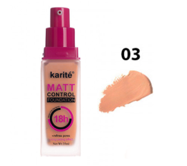 Fond de ten Karite Matt Control, 35 ml, nuanta 03 Fond de Ten Karite Matt Control este expert in construirea unui aspect mat, lipsit de luciul nesanatos al excesului de sebum! Are ca tinta umplerea si matifierea imperfectiunilor. Noul fond de ten se mandreste cu o rezistenta...